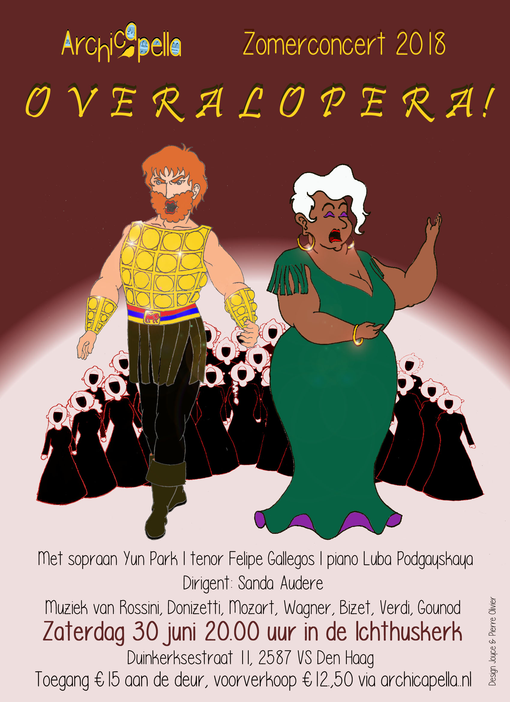 Het koor bracht gekende operastukken ten gehore in samenzang met twee voortreffelijke professionele solisten: de Koreaanse sopraan Yun Park en de Mexicaanse tenor Felipe Gallegos. Archicapella’s vaste pianiste Luba Podgayskaya omlijstte het geheel instrumentaal en Sanda Audere dirigeerde. Op het programma stond muziek van Mozart, Rossini, Gerswin, Donizetti, Wagner, Bizet, Verdi, Gilbert & Sullivan, Gounod, Offenbach, Borodin en Lloyd Webber.