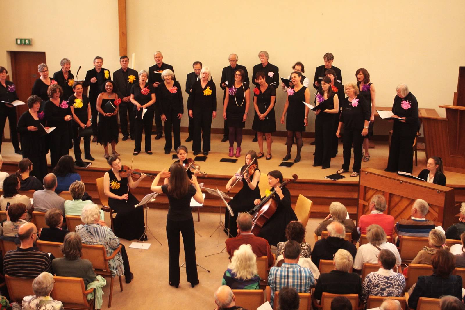 In september 2015 verhuisden we naar de Hall van de Engelse Kerk aan de Ary van der Spuyweg, een grote stap voor het koor. In de nasleep van ons laatste zomerconcert in de Engelse Kerk – de Vredeskapel was wegens renovatie niet beschikbaar – had het hartelijke contact met de dominee geleid tot de mogelijkheid om voortaan in de Hall te repeteren, gezien de groei van het koor de laatste twee jaar een aantrekkelijk aanbod.